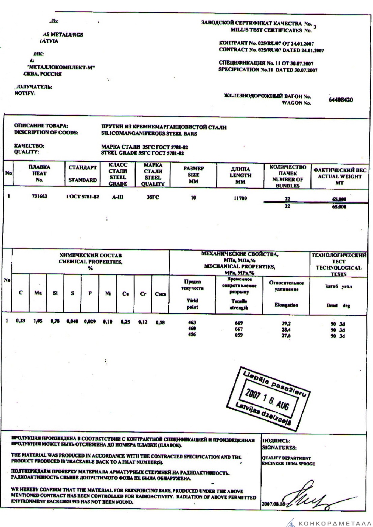 Наша металлобаза занимается комплексными поставками строительных материалов от ведущих производителей в отрасли стройматериалов. Марка у данной арматуры - А3, а диаметр- 10 мм. Выпускается с использованием следующих марок стали: 35ГС. Цены на всю нашу продукцию указаны из расчета за 1 тонну. Возможна резка под необходимый Вам размер.