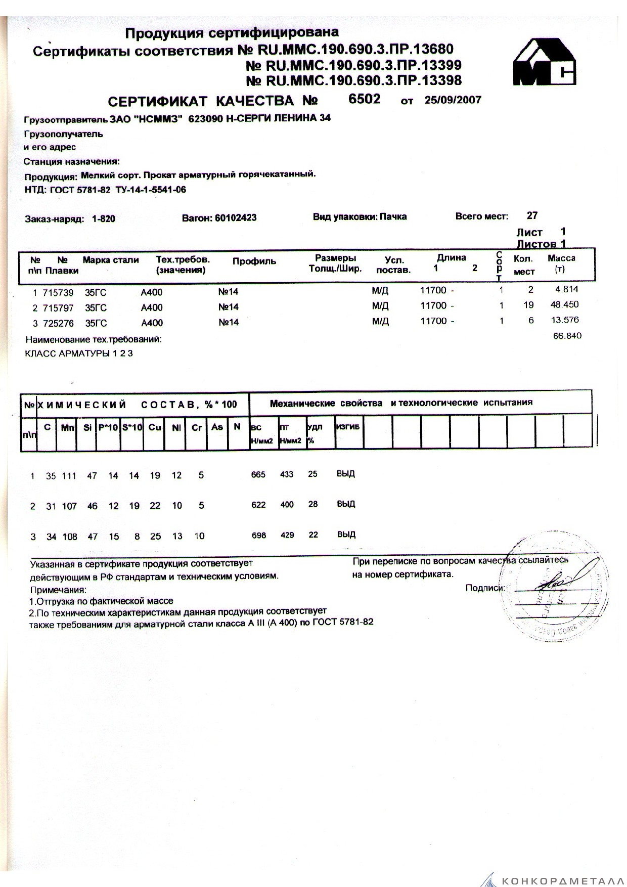 Подтвержденное сертификатами и действующими ГОСТ