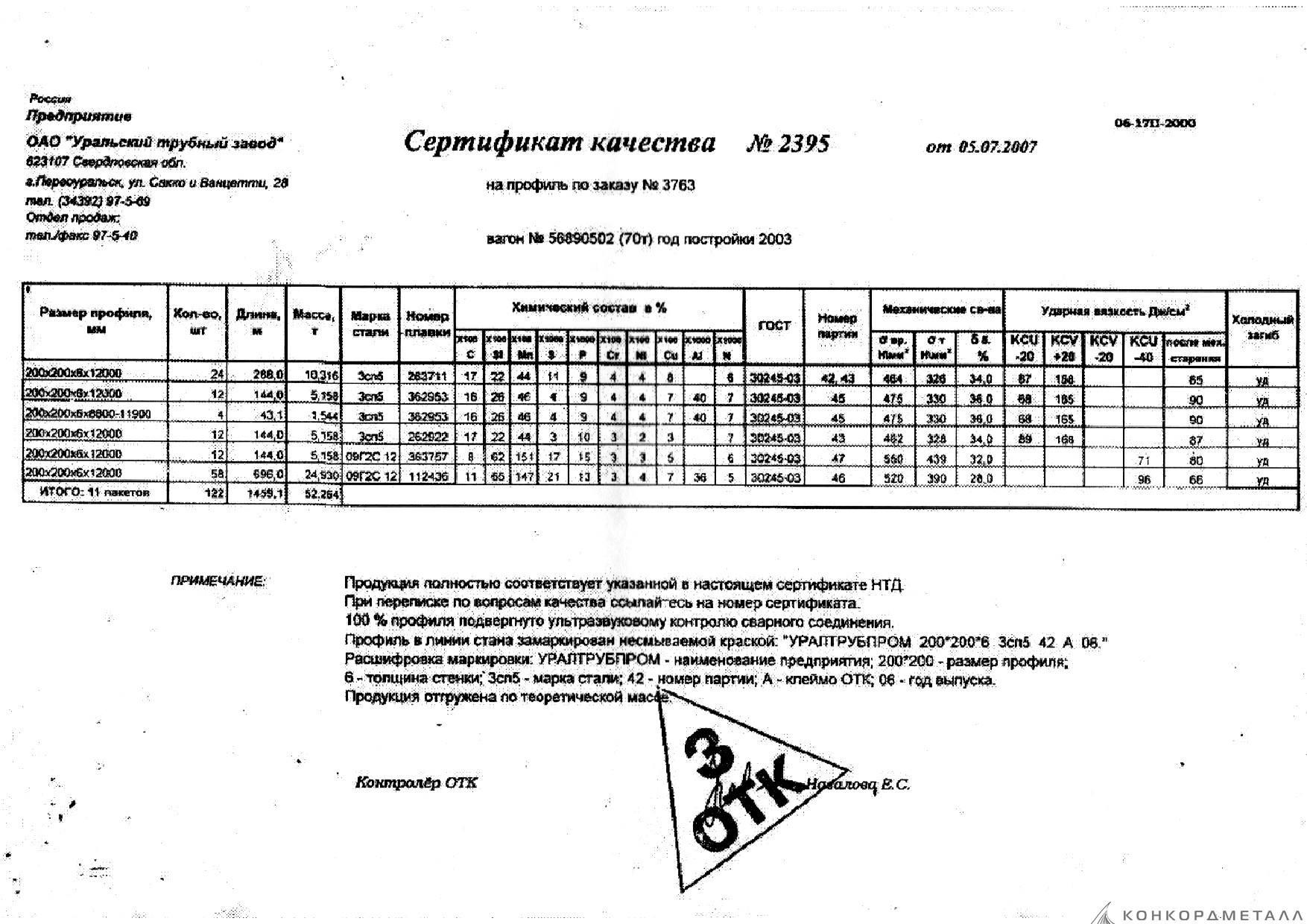 С каждой товарной позицией мы предоставляем все сертификаты и паспорта качества, а также товарно-транспортную накладную.